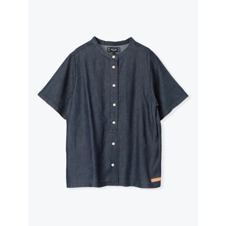 バンドカラーでカジュアルな印象に仕上げたワークシャツ。
