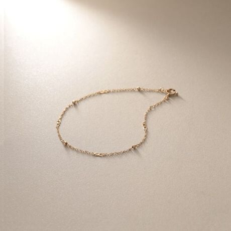 フラットキヘイのコマとビーズが交互に配置されたデザインチェーンブレスレット。