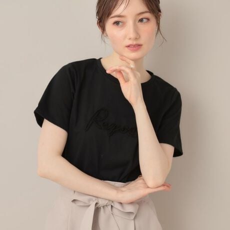 同色のテープロゴデザインが上品なデザインロゴTシャツ。