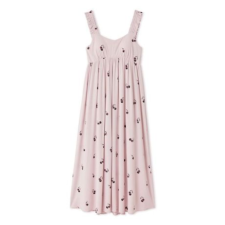 ダークチェリー柄をテーマにしたルームウェアシリーズ。なめらかなレーヨン素材のワンピースに、深みのあるダークチェリー柄を散りばめています。揺れ動くチェリーや、艶やかな実の表情にもこだわった大人可愛い質感。肩や胸元にはギャザーを寄せ、華やかな表情をプラスしました。カップ入りなので1枚でも着用いただけます。色はオフホワイトとピンクの2色をご用意。同シリーズのチェリー柄雑貨と合わせたり、同時期に展開するクロシェショートカーディガンとのコーディネートもおすすめです。