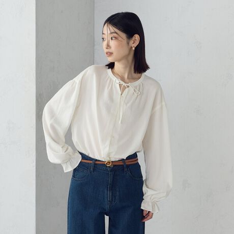 襟元はすっきりと、袖はギャザー分量や位置を調整することで