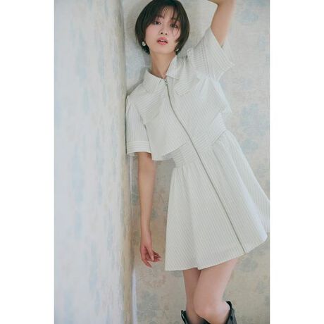 【カジュアルとフェミニンのバランスを楽しむriendaワンピース】■ポイント胸元のフレアとその下から切り替える太めのシャーリングがポイント。体のラインがきれいに見えるよう横からも後ろからも抜け目のないシルエットに仕上げています。無地のほうはステッチを効かせて引き締め、ストライプは柄を生かしてステッチ糸を細目にしたのもこだわりのポイントです。(ロング丈バージョン:110IS533-0901)■ディテールフロントジップと胸元フラップがキレイめワンピをriendaらしくカジュアルダウンさせてくれます。襟元の開きはお好みで抜け感を調節していただけます。ウエスト部分は太めのゴムシャーリングを施し、キュッと引き締まったウエスト部分から裾にかけてひらりと広がるフレアーシルエットで、スタイルアップ効果は抜群です。肩幅が華奢に見えるようデザインしつつ、気心地はラフなのでデイリーに着用いただけます。■スタイリングロングブーツ、キレイ目コートの合わせも◎カジュアルにスニーカー合わせも相性抜群です。■生地透け感:なし裏地:あり伸縮性:なし光沢感:なし厚さ:普通■商品のお気に入り登録お気に入りアイテムの再入荷・在庫1点などの通知を受け取ることができます。[注意事項]※画像の商品はサンプルです。実際の商品と仕様、加工が若干異なる場合があります。※画像の商品は光の照射や角度、お使いのモニター環境により、実物と色味が異なる場合がございます。※着用、お取り扱いの際は、アテンションタグをご確認ください。