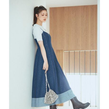 パネル切り替えで縦ラインを強調しながら、ボディをキレイに見せるキャミワンピース。背中のシャーリングがフェミニンなポイントになり、上半身は着心地よくフィット。裾は裏使いで配色見えがポイント。脇のハギを高めにし、腰の位置を高く見せます。肩紐は長さ調節可能。<素材>洗いの加工感が綺麗に映えるデニムを使用。デニムの織り目はしっかりありつつも縦にスラブが立ちすぎてない表面感なので加工後もハードになり過ぎず、ブリーチやブラストも全体的に馴染んだ上品な印象です。柔らかい仕上がりの生地感で着心地も良いです。<詳細>仕様・左ファスナー裏地・なし透け感・なし / 光沢・なし / 伸縮性・なし生地の厚さ・普通デニム製品は摩擦により色移りする可能性がございます。白や淡色系衣料品や雑貨などご着用の際は十分にご注意ください。※モデルの着用画像の場合、光の当たり具合により、実際の色味と異なって見えることがございます。色味は、商品単体の画像をご参照ください。