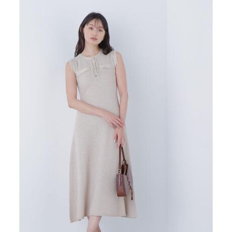 フリンジツイードニットワンピース