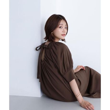 すっきりとしたVネックとサックラインがポイントのワンピース。バックリボンデザインでラウンドに開いており、抜け感のある着方ができます。便利なスラッシュポケット付きで、ウエストマークがなく着脱も簡単でゆったりと着ていただけます。<素材>風合いに表情のある合繊素材を使用。シワになりにくい素材感です。<詳細>仕様・開閉なし裏地・なし透け感・なし / 光沢・なし / 伸縮性・ややあり生地の厚さ・普通※モデルの着用画像の場合、光の当たり具合により、実際の色味と異なって見えることがございます。色味は、商品単体の画像をご参照ください。