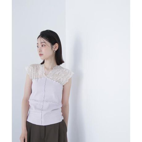 <BLANC(ブラン)>今のほしいをここに。自分らしく、自由なスタイリングを楽しみたい。洗練されたCLASS感と“今”を感じるモードフェミニンなアイテムを提案します。リブカットソーをメローでつなぎ合わせたトップス。透け感のある肩部分のレースがポイント。一枚でもインナーとして着やすいデザインです。<素材>華奢で伸縮性のあるレース、伸縮性のあるリブカットソー。<詳細>仕様・開閉なし裏地・なし透け感・レース部分あり、カットソー部分なし / 光沢・なし / 伸縮性・あり生地の厚さ・普通※モデルの着用画像の場合、光の当たり具合により、実際の色味と異なって見えることがございます。色味は、商品単体の画像をご参照ください。
