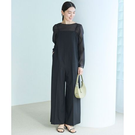 ■デザイン気温の高い季節でも涼しく着られる上品なオールインワン。華奢な肩紐や後ろのV開きデザインで女性らしく仕上げました。やや高めの切り替えはスタイルアップ見えが叶う嬉しいポイント。程よくゆとりのあるシルエットでボディラインを拾わず、また風通しもよいため夏場でも涼しく着ていただけます。肩紐はアジャスター付きでお好みの長さに調節が可能です。インナーにTシャツを合わせたカジュアルスタイルから、同素材のジレやジャケットを合わせたオンスタイルまで幅広いシーンで活躍します。