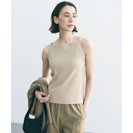 ■デザイン肩周りを細身のキャミソール型にすることで上品な抜け感を演出してくれるタンクトップ。伸縮性、フィット感のあるソフトな素材は、暑い夏も快適な着心地を実現します。デコルテ周りを綺麗に見せるスクエアネック仕様で、女性らしさが引き立つ一枚です。