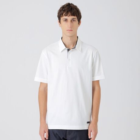 ベーシックなデザインの機能的なポロシャツ。内台衿、下前立てにクレストブリッジチェックをあしらう事でデザインアクセントに。シンプルなデザインなので、一枚での着用はもちろん、ジャケットやブルゾンのインナーとしても活躍します。