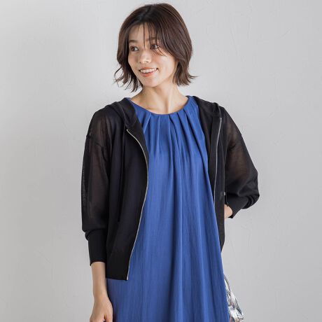 夏に活躍すること間違い無しのシアーニットパーカー。