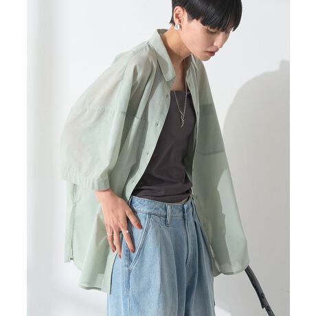 触れると冷んやり感じる接触冷感性素材で仕立てたシャツ。ゆとりのあるボックスシルエットにサイドスリットを施し、トップスイン・アウトのどちらでもサマ見えする魅力的なデザインです。シワになりにくく、ご自宅でのお手入れがしやすいのも嬉しいポイント。色柄物インナーとのコントラストも楽しめるおすすめのアイテムです。***接触冷感***触れた瞬間ひんやりと感じる、接触冷感性のある素材を使用しております。