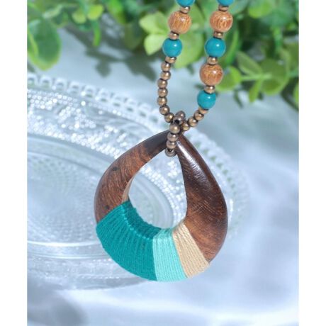 大人っぽく使い勝手の良いウッドネックレス