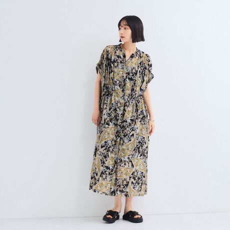 ペイズリー柄スモックシャツワンピース≪手洗い可能≫