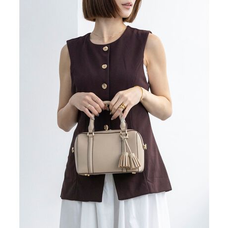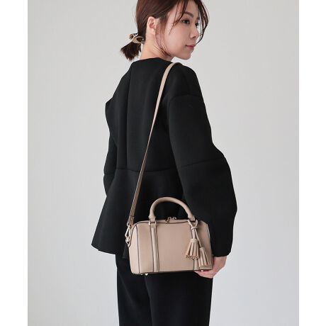 丸みのあるフォルムが上品な可愛らしさを演出する「NERINE」。コンパクトな見た目ながら収納力があり、長財布や小物もきちんと収まります。無駄のないシンプルなデザインに、取り外し可能なタッセルチャームが華やかさをプラスします。