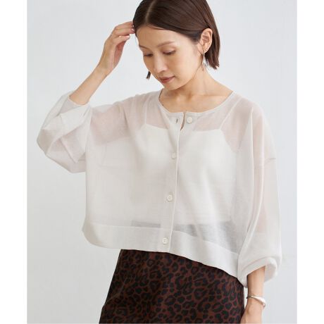 フィルムのような薄くて繊細な編地が女性らしい一枚。