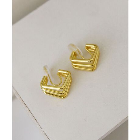 痛くなりにくい スクエア3連メタルイヤリング シリコンカバー付き