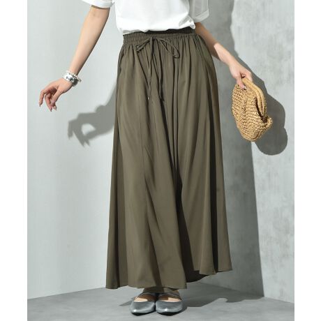 綺麗に落ちるレーヨン混素材を使用したフレアーパンツ。肌さわりが良く上品なナチュラル感で大人の女性が着まわせるお勧めな1枚です。スカートにも見えるフレアー分量感でフェミニンさもキープされているのも嬉しいポイント。リラックス感もあるのでこれからのシーズン大活躍間違いなしです!