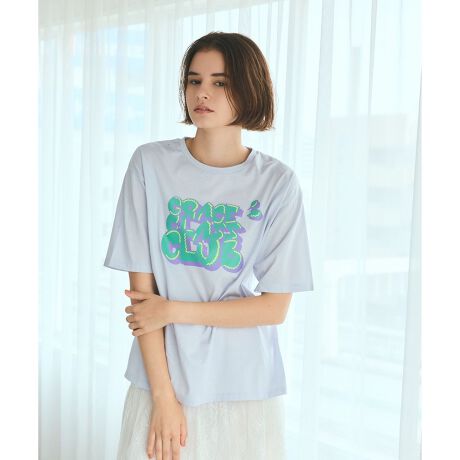 着心地の良い細番手のシルケット天竺に、オリジナルのグラフィティプリントをのせたTシャツ。 ハードに見えがちなアートな柄を、ポップなフォントにしたり色のバランスに拘る事で、ほのかに薫る可愛らしさと現代の空気感を感じられるデザインに仕上げました。ゆったりとしたオーバーサイズにして、大人の女性がさっと纏っておしゃれに見えるシルエットに。スタイリングのバリエーションが広がるアイテムは、あえて綺麗めなスカートやレーシーなボトムス、ツイードパンツなどとのスタイリングをぜひ楽しんでいただいたいアイテムです。