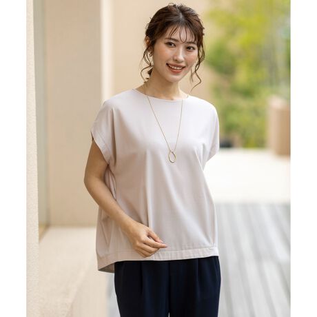 【接触冷感・UVカット・洗える】ハイストレッチスムースフレンチスリーブ カットソー