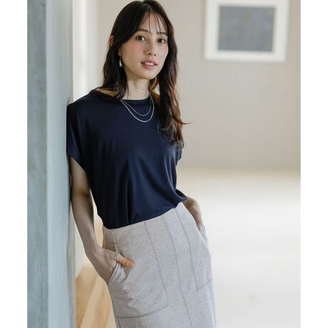 【接触冷感・UVカット・洗える】ハイストレッチスムースフレンチスリーブ カットソー