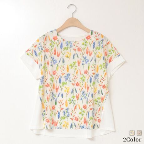 上品なボタニカル柄が目を惹くフレンチスリーブカットソー。