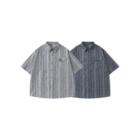 マルチストライプ半袖シャツ