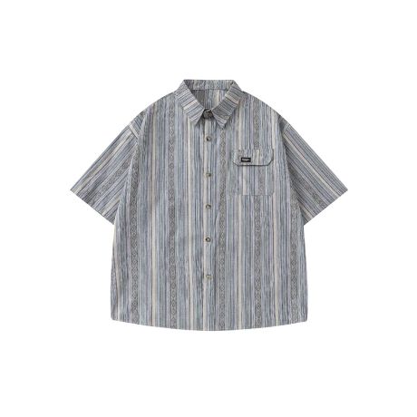 風合いのあるマルチストライプ柄が目を引く、レトロ感漂う半袖シャツ。程よいゆるさのあるシルエットで、ラフでリラックスした雰囲気を持つ一着。