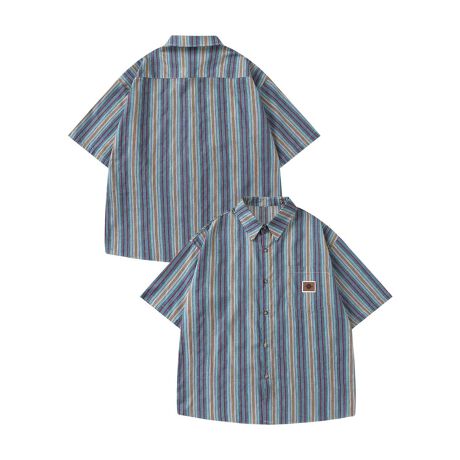 レトロな雰囲気を醸し出すマルチカラーストライプの半袖シャツ。どこか目を引くオリエンタルな配色で、着るだけでコーデの主役になれるアイテムです。