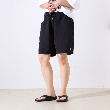 小屋ロゴがアクセント。ラフに使える軽量ナイロンショーツ