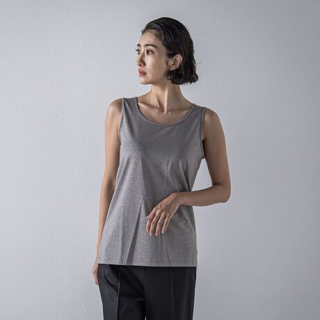ほんのりラメがきらめくベア天竺素材で仕立てた、大人のためのタンクトップ。