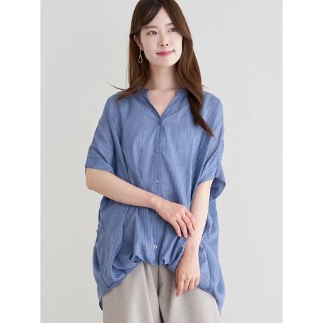 シアーストライプで軽やかな印象に仕上げたブラウス。