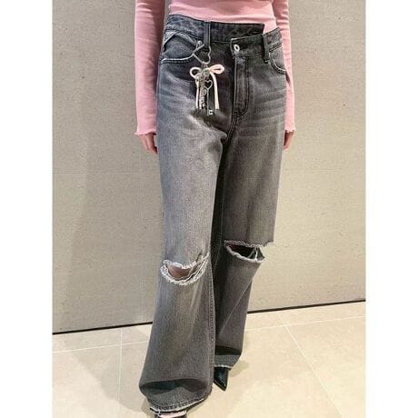 <b>【ウエストデザインが印象的なひと癖で魅せるデニムワイドパンツ】</b>