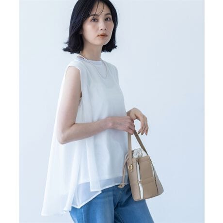 シアーなシフォン楊柳生地が涼しげなチュニックトップス