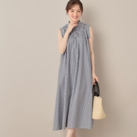 胸元に細かいシャーリングデザインが入ったフレンチスリーブワンピース。
