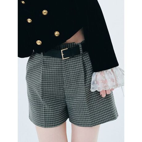 昨年も人気を博した「LILY BROWN」のチェック柄スカショーパンが、今年はラップ風デザインを取り入れてアップデート。フロントは巻きスカートのようなニュアンスを演出し、バックスタイルにはタックを効かせて、前後で異なる印象に仕上げました。コンパクトな丈感ながら、パンツ仕様の裏地付きでアクティブに過ごせる安心感も◎。コーディネートの主役になる、モード感漂うミニボトムです。