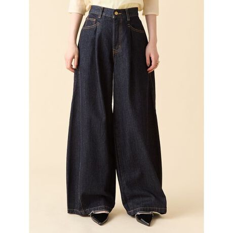 ゆったりとしたシルエットが魅力のバギーデニムは、サイドに切り替えを入れることでシルエットが間延びせず、スタイルアップも叶える一本に。ほんのりとボーイズライクなデザインながら、フロントとヒップポケットにはクラシカルな柄入りボタンをあしらい、ディテールでさりげない個性をプラスしました。フェミニンなトップスとのミックススタイルはもちろん、カジュアルに振り切ったスタイリングも楽しめる万能デニムです。