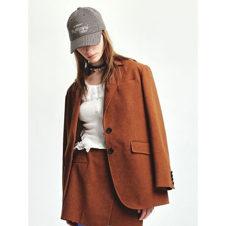 同素材のミニスカート(品番LWFJ254076)とセットアップで着用できる、ミドル丈のテーラードジャケット。肩まわりはオーバーすぎないバランスに調整し、きちんと感と抜け感を両立したシルエットに仕上げました。腰ポケットには「Lily Brown?」の刺繍を施し、さりげなく愛らしさをプラス。単品でも着回しやすく、クラシカルからトラッドまで幅広いスタイリングに活躍する一着です。
