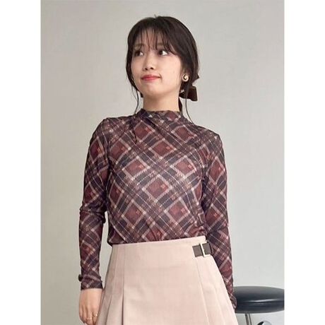 柔らかな肌ざわりと伸縮性を兼ね備えたシアー素材を使用。透け感を活かしたレイヤードスタイルや、インナー使いでも映える存在感のある一枚です。