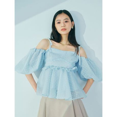 毎シーズン高い人気を誇るペプラムビスチェが、アップデートして今季も登場。胸下の切り替えにフリルを挟み込むことで、より一層フェミニンな印象に仕上げた一着です。肩にはベロア素材のリボンをあしらい、コーディネートのアクセントに。リボンはボタンで簡単に取り外し可能で、パフスリーブ・オフショルダー・キャミソールの3WAYで着こなしの幅が広がります。
