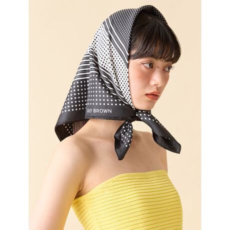 上品な光沢が魅力のポリエステルツイル素材で仕立てた、アレンジ自在なスカーフ。柔らかく滑らかな生地感で巻きやすく、裏表どちらにも柄を施したリバーシブル仕様のため、表情の変化も楽しめます。首元やヘアアレンジにはもちろん、バッグに結んでアクセントにするのもおすすめ。洗練されたLBモノグラム、イエローラインが効いたレオパード、モードな白黒ドットの3柄展開で、日々のコーディネートに彩りを添えるアイテムです。