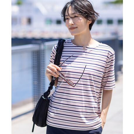 【冷感】【UVカット】ひやさらコットンプレミアムマルチボーダーTシャツ