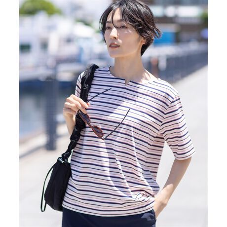 【冷感】【UVカット】ひやさらコットンプレミアムマルチボーダーTシャツ