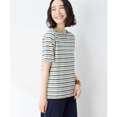 【冷感】【UVカット】ひやさらコットンプレミアムマルチボーダーTシャツ