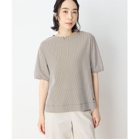 細身のストライプ柄が爽やかな印象のプルオーバー