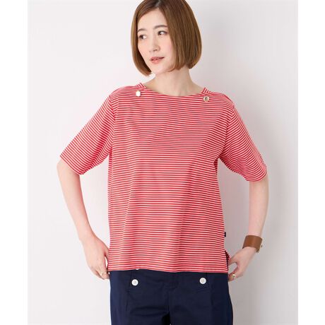 【冷感】ボタンボーダープルオーバー