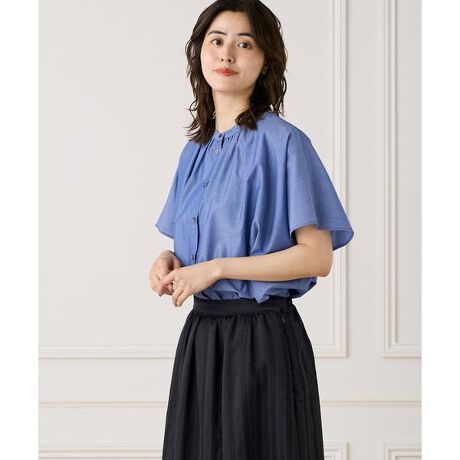 ■デザイン風通しの良いデザインと軽やかな素材使いが、涼しく快適な着心地を叶える一枚。ポンチョ風のノンストレスなシルエットが体を優しく包み込み、リラックス感のある着こなしを演出します。上品な印象のバンドカラーに、襟ぐりのギャザーが程よい表情を添え、シンプルながらも女性らしさが際立つデザインに。気になる二の腕をさりげなくカバーする袖丈も魅力のひとつです。さらに、サイドに入ったスリットと揺れ感のあるヘムラインが動きにニュアンスを加え、着るだけでこなれた印象に仕上がります。※ブラックはWEB限定色■素材吸放湿性に優れ、シルクの様な肌触りとコットンのぬくもりを併せ持つキュプラを複合した素材で無地・ストライプ柄を展開。しなやかな風合いでありながらシワになりにくく、適度な光沢感が上品さを感じられる素材。・水洗い可同素材のブラウス品番:7052182068■サンプル撮影商品画像の商品はサンプルです。実際の商品とはサイズや色味、素材、デザイン等の仕様が若干変更になる場合がございます。■カラーについては、可能な限り実際の商品に近いカラーで撮影をおこなっておりますが、照明の関係により実際の製品とは色味が違って見える場合があります。またパソコン・スマートフォンなどの環境により、若干製品と画像のカラーが異なる場合もございます。現物と画像のカラー差異については返品理由となりませんので、予めご了承ください。■サイズ表記はあくまで目安となります