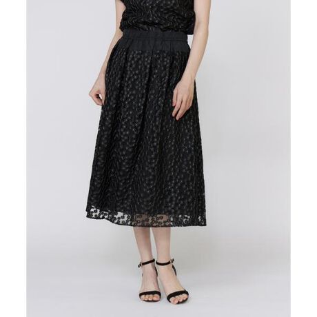 ■デザインチュールに小さな小花柄のラメ刺しゅうをあしらった、繊細で上品なタックスカート。ウエスト部分には、白にはクリーム色、黒にはブラックの高密度タフタ素材を使用し、デザイン性のある切り替えがすっきりと見せながらもゴム仕様で着心地の良い仕様です。裾周りには贅沢に分量を持たせ、繊細なチュール素材だからこそ引き立つ、ふんわりとしたラグジュアリーなシルエットに仕上げました。■素材チュールにラメ刺繍を施すことで、可愛さと華やかさを併せ持つ刺繍素材です。シアーな質感、細かい花柄刺繍の立体感、柄中心部のラメ糸により可愛さと華やかさを併せ持つ素材に仕上げました。・水洗い可・ポケットあり ・裏地あり・ウエストゴム仕様同素材のブラウス品番:5153182808■サンプル撮影商品画像の商品はサンプルです。実際の商品とはサイズや色味、素材、デザイン等の仕様が若干変更になる場合がございます。■カラーについては、可能な限り実際の商品に近いカラーにて撮影をおこなっておりますが、照明の関係により実際の製品とは色味が違って見える場合があります。またパソコン・スマートフォンなどの環境により、若干製品と画像のカラーが異なる場合もございます。現物と画像のカラー差異については返品理由となりませんので、予めご了承ください。■サイズ表記はあくまで目安となります。