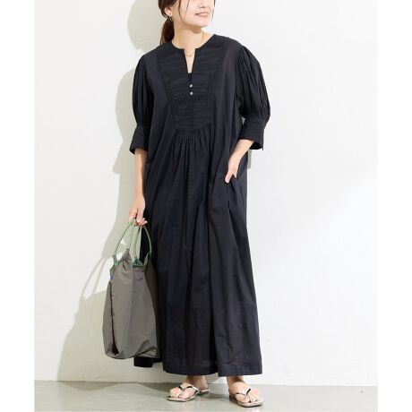 インドコットンの涼しげな素材にオリジナルキカ柄の刺繍を施したゆったりとしたサイズ感のワンピース。袖もギャザーをたっぷり入れていて肌離れもよく真夏にも快適に着て頂けるマキシ丈のワンピースです。