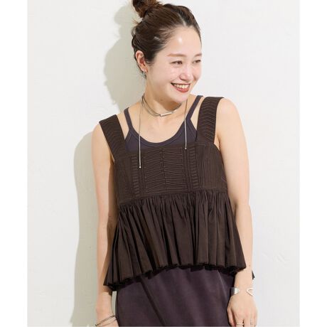 インドならではのコットンの涼しげな風合いの素材感に、オリジナルキカ柄刺繍を施したキャミブラウス。