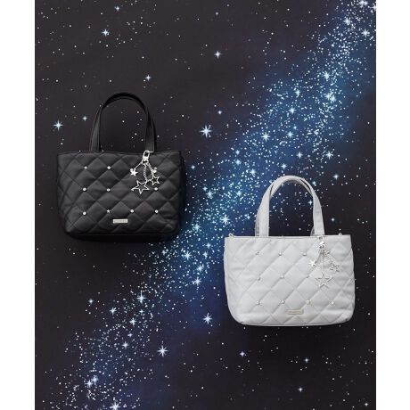 【2WAY仕様】レザー調のキルティング生地に星モチーフやビジューを散りばめたトートバッグ。